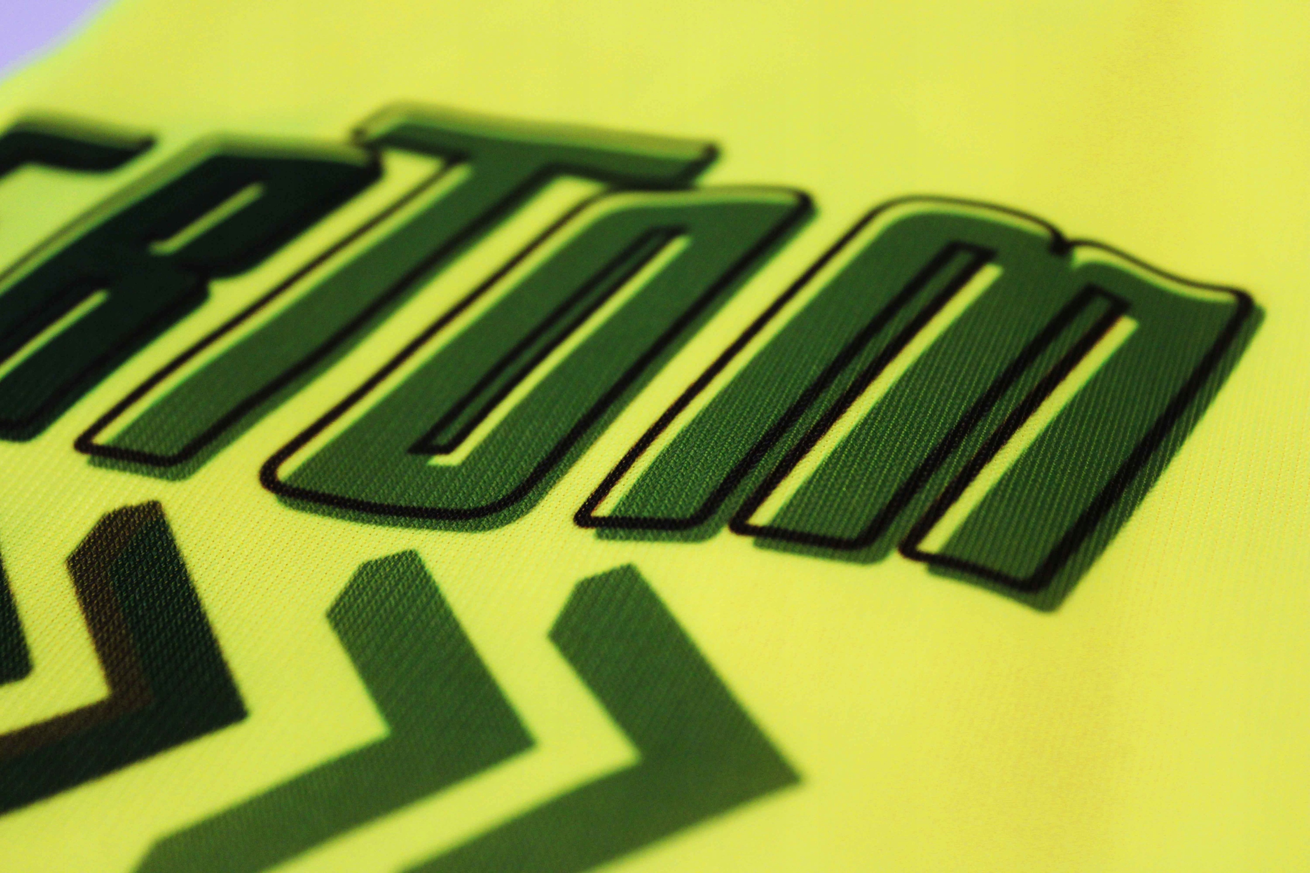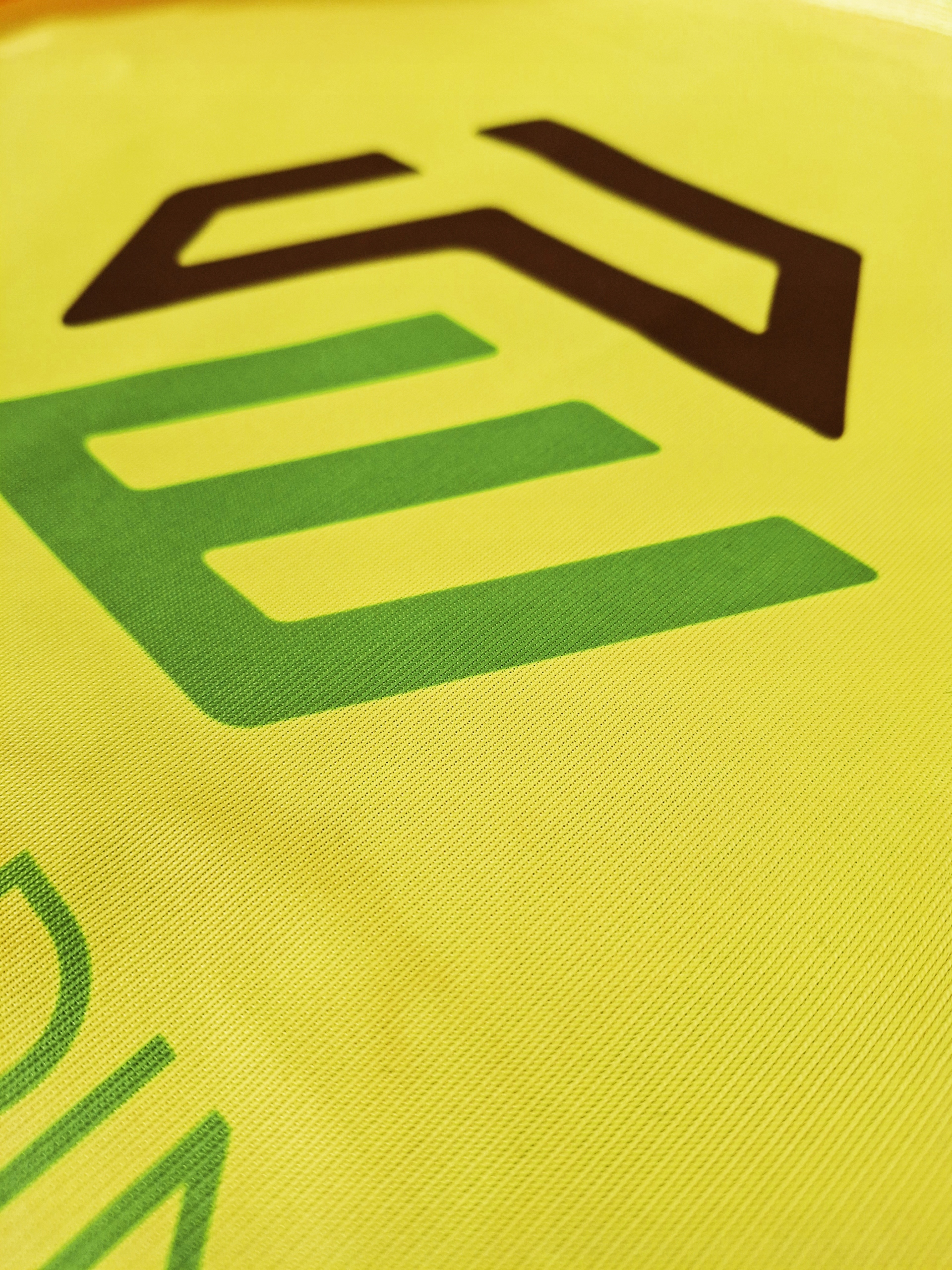 Наконец, фотография жилета после применения синего отпечатка - как вы можете видеть, что цвет падает в зеленый, но клиент знал, что оттенок не выйдет, как в логотипе, и все же он вернулся к нам, снова сделав идентичный отпечаток. Поэтому это только вопрос индивидуальных потребностей и вкуса!
