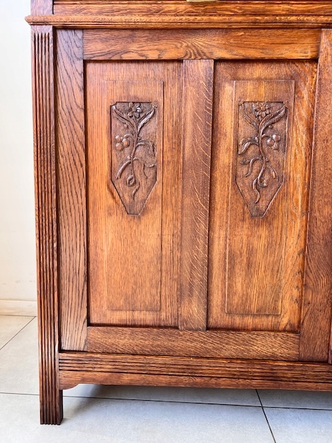 Мы рады представить Вам уникальный дубовый сервант, выполненный в стиле модерн. По нашим оценкам, оно датируется 1920-ми годами. Он сохранился в хорошем состоянии, что доказывает его исключительное качество.