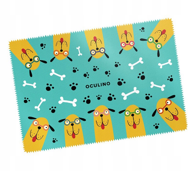 Красочная ткань для детских очков с принтом собаки НАНА из мотивационных книг Oculino. Прекрасная отсылка к известной серии Oculino.