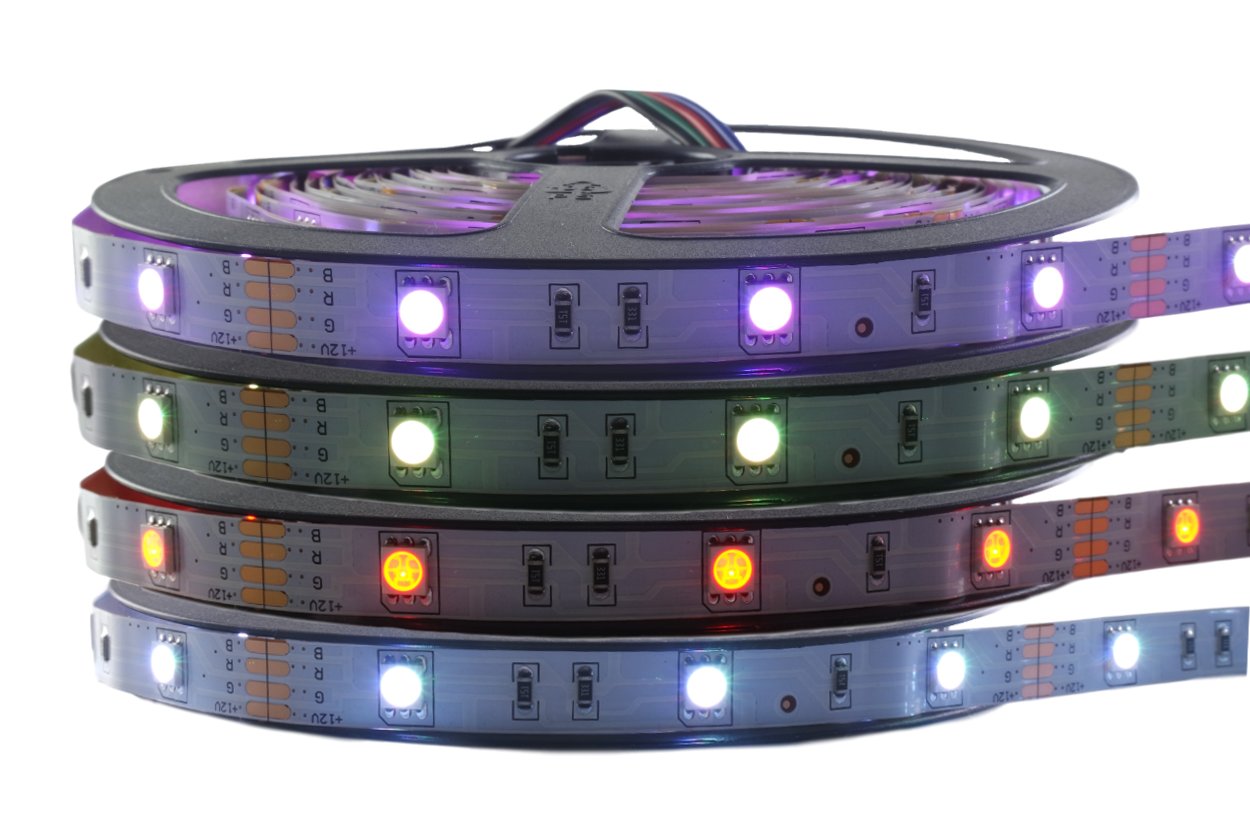 - Многоцветность - разноцветный светодиод может светиться любым цветом - красным, синим, зеленый, смесь этих цветов и холодного белого. Белый цвет в RGB-лентах получается путем смешивания красного, зеленого и синего при нажатии кнопки W или белого на пульте.