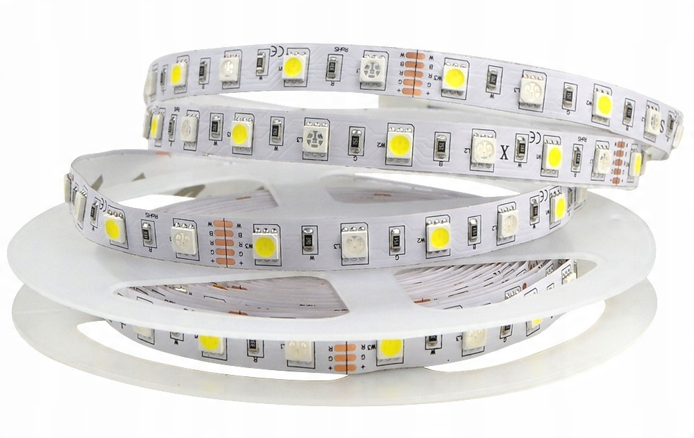 Светодиодная лента RGB + WW/CW представляет собой улучшенную стандартную многоцветную RGB-ленту, которую можно использовать для получения чистого теплого и холодного белого цвета. На обычной RGB-ленте вообще невозможно получить теплый цвет, а холодный цвет получается путем смешивания красного, зеленого и синего цветов, а значит, холодный цвет нечеткий и превращается в сине-фиолетовый. Лента RGBW состоит из 150 светодиодов RGB и 150 светодиодов белого (теплого или холодного) цвета. Диоды устанавливаются поочередно.
