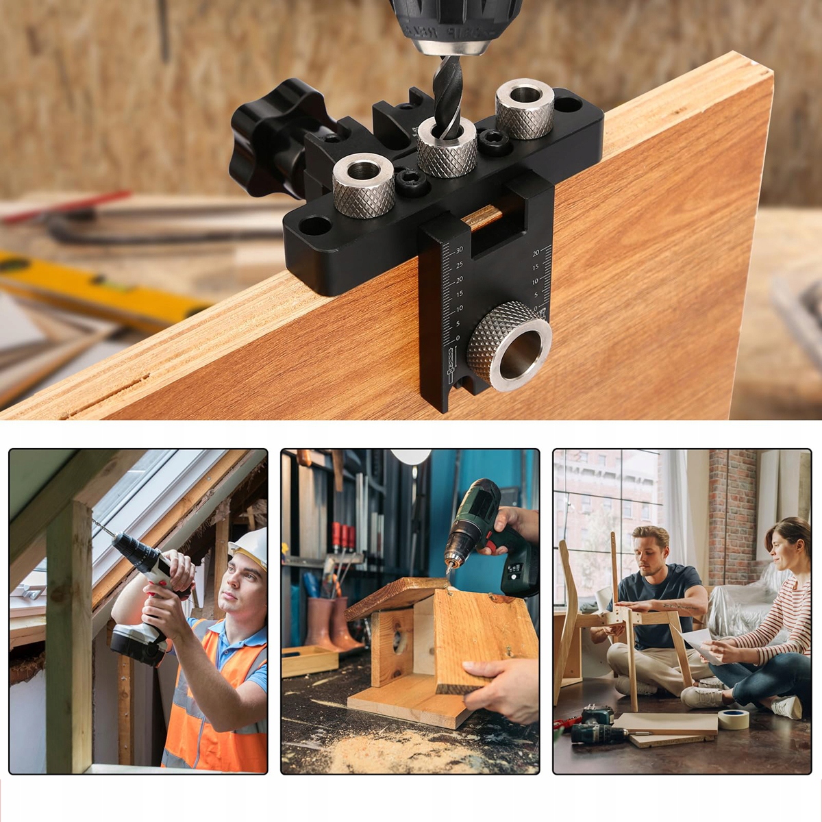 - Возможность отрегулировать высоту и глубину отверстия. Точное позиционирование. Предназначен для бурения отверстий и соединительных панелей, что делает его идеальным инструментом для мебели для панелей.