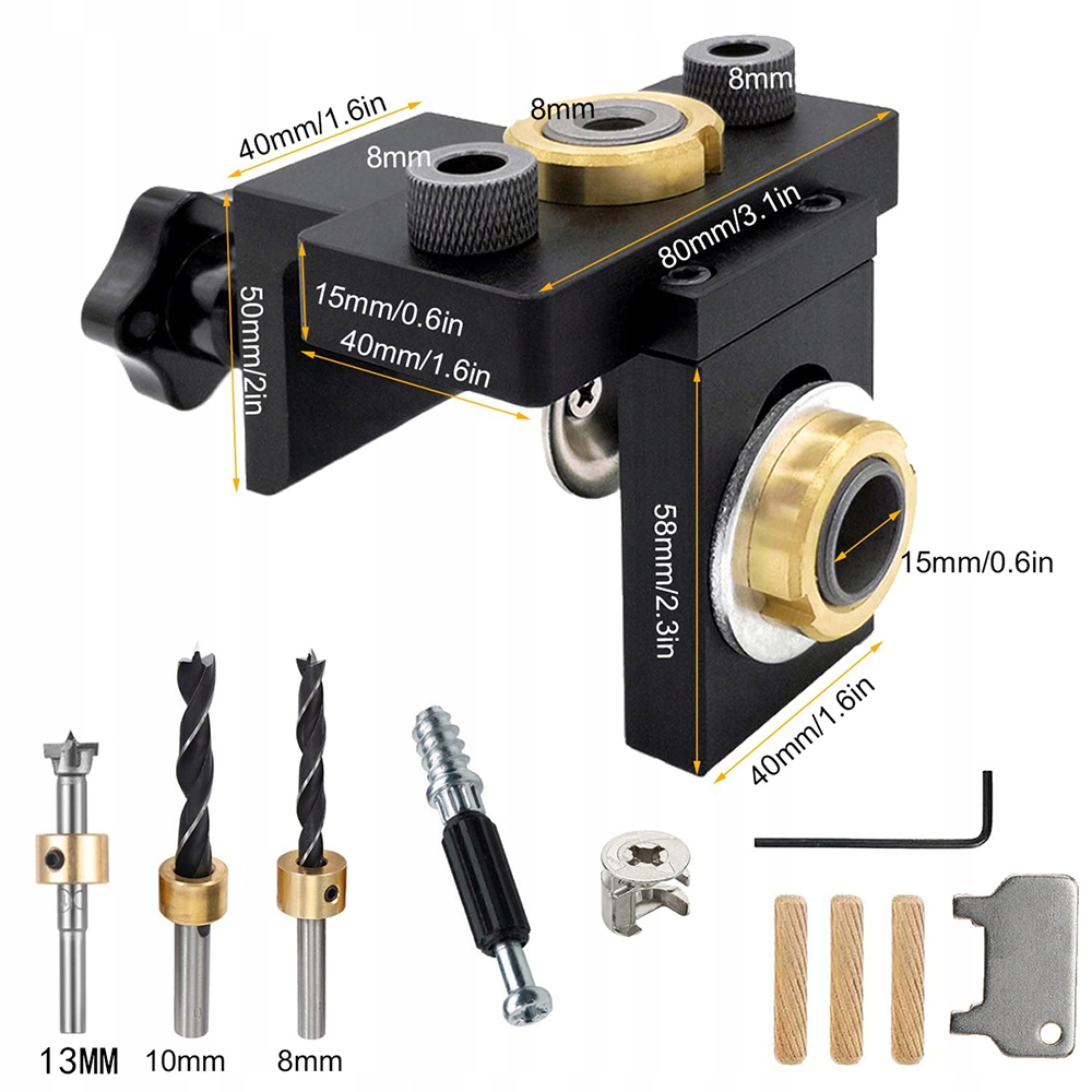 🌟 Указанный качественный материал: 3 -1 -1 шаблон отверстий изготовлен из сплава алюминия 6061 с превосходным окислением поверхности, что делает его прочным и долговечным, а не ржавчина. Буровая деревянные дюбели имеет местонахождение элементов с обеих сторон, что позволяет горизонтальному бурению. Регулируемый металлический рукав позволяет точно устанавливать во время бурения, облегчая управление высотой бурения и глубины отверстия. Оборудован буриной 8 мм/10 мм/15 мм, для удовлетворения ваших потребностей с точки зрения различных отверстий. Использование: благодаря шаблону бурового раскола, вы можете комфортно и легко просверлить вертикальные отверстия, чтобы скрыть винты в деревянной мебели, точные деревообработки, идеальные разъемы мебели и инструменты для деревообработки.