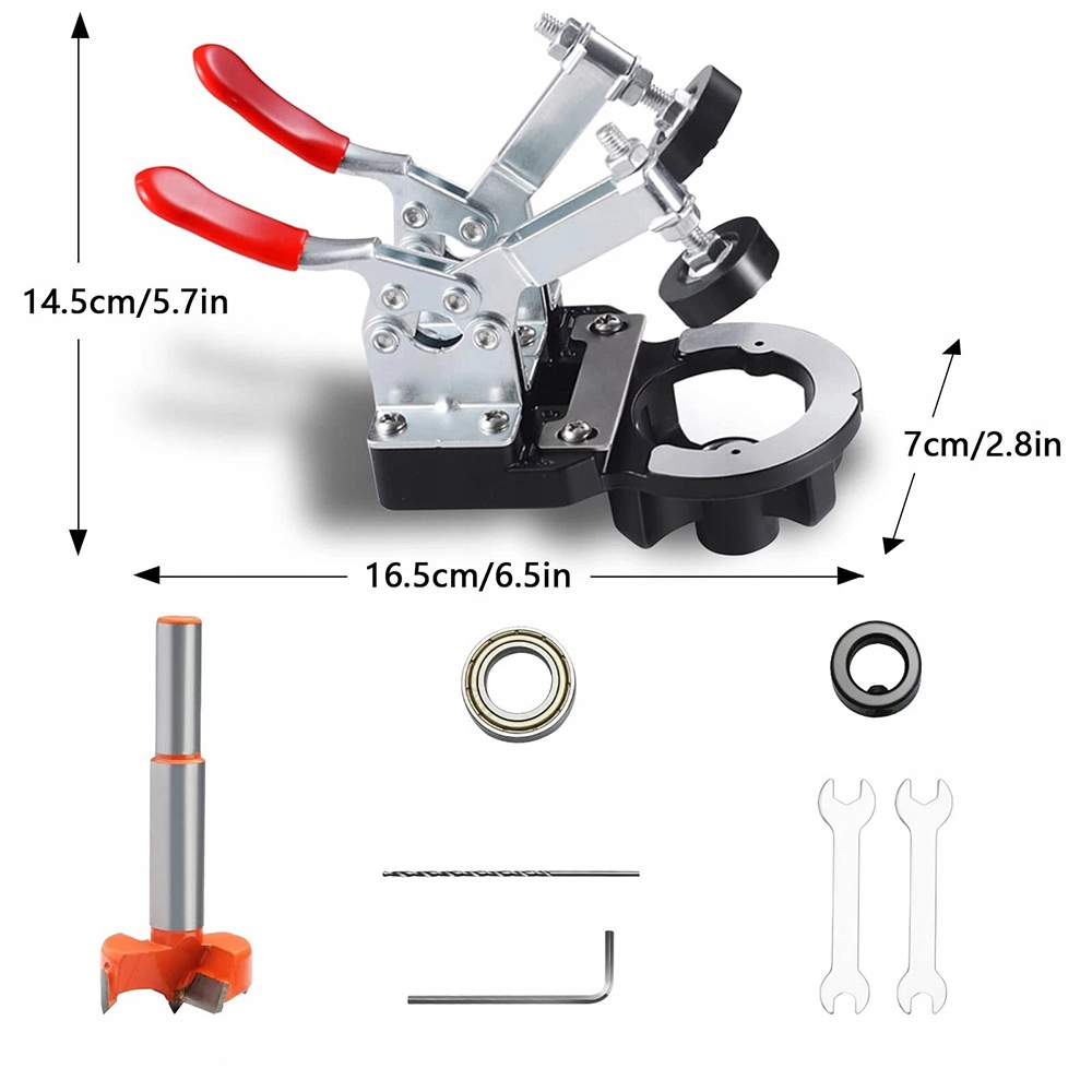 - основание сделана из алюминиевого сплава. - Благодаря боковым отверстиям для бурения, вы можете использовать этот инструмент для позиционирования и бурения отверстий (постоянное расстояние между отверстиями составляет 48 мм, сначала вам нужно удалить сверло), или вы можете напрямую использовать боковые отверстия в шарнирных шарнирах.