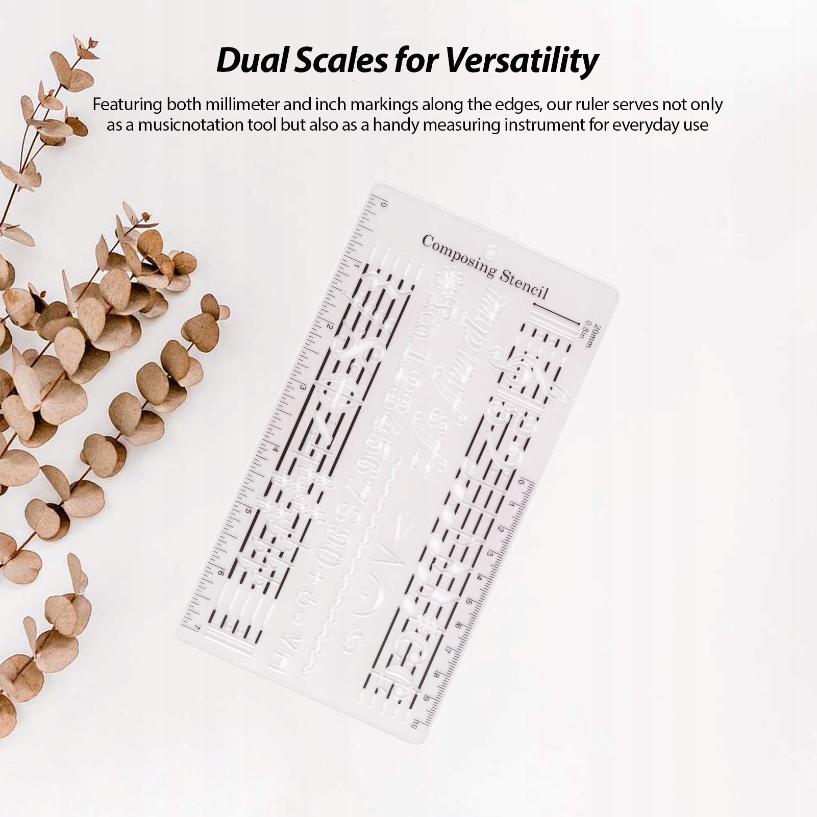 1. 【Комфортный и всеобъемлющий】: Наш пять человек правителя и правитель персонала живописи стремится удовлетворить все ваши музыкальные потребности. Он включает в себя широкий спектр обычно используемых музыкальных символов, включая серийные номера, ключевые сигнатуры, ритмы, склеивание, случайные и различные другие линии. Благодаря этому правителю у вас будет все необходимое для создания профессиональных заметок.