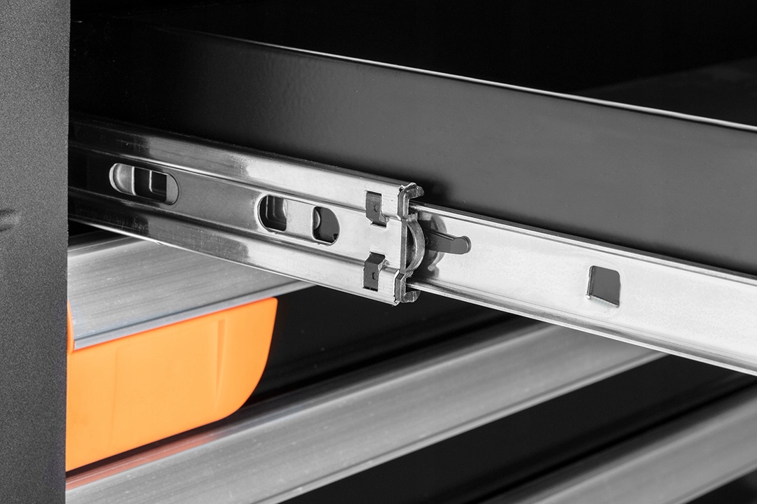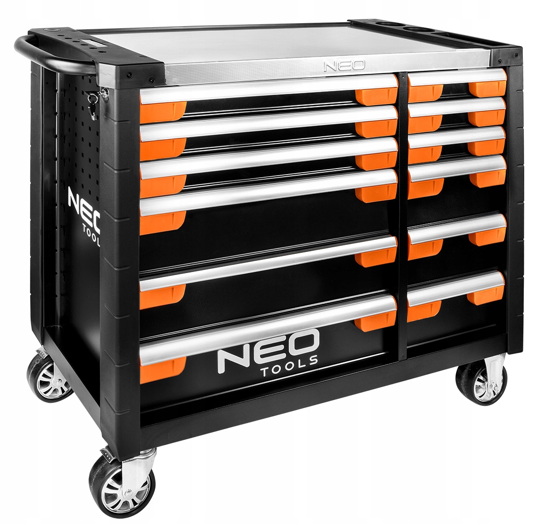Pro Workshop Cabinet, 12 ящиков 229 элементов 84-225+G Neo Brands составляют полный набор аксессуаров и имеют 12 полных ящиков, в том числе 6 больших, где 3 низкие с размером 560 x 400 x 60 мм и 3 высокого уровня, 560 x 400 x 139 мм, а также 6 маленьких, включая 3 низкого, включая 252,5 x 400 x 400 x 132.5. мм. Общий размер шкафа с колесами составляет 110,5 х 46,5 х 97,8 см (высота без колес составляет 82,5 см). Шкаф имеет стальной корпус и характеризуется емкостью 600 кг. Алюминиевый топ с местами для отверток и аксессуаров, а также боковой перфорацией с пространством для крючков и продуктов бренда Neo расширяют ассортимент использования шкафа. Угловые бамперы, боковая ручка и замок ящика также полезны. Руководство по шарикам и возможность открывать ящики на 100% позволяют удобно использовать шкаф. Кроме того, они совместимы с вставками NEO и оснащены матами EVA высотой 2 мм. Шкафы закрыты централизованно (два клавиша включены в набор). Замок колеса обеспечивает безопасность работы. Оборудование состоит из продуктов от Sku: 84-249, 84-247, 84-246, 84-242, 84-241, 84-240, 84-239, 84-238, 84-237, 84-236, 84-235, 84-234, 84-233, 84-232, 84-231, 844-230. Шкаф Pro Workshop с 229 NEO аксессуарами является гарантией качества на протяжении многих лет использования.