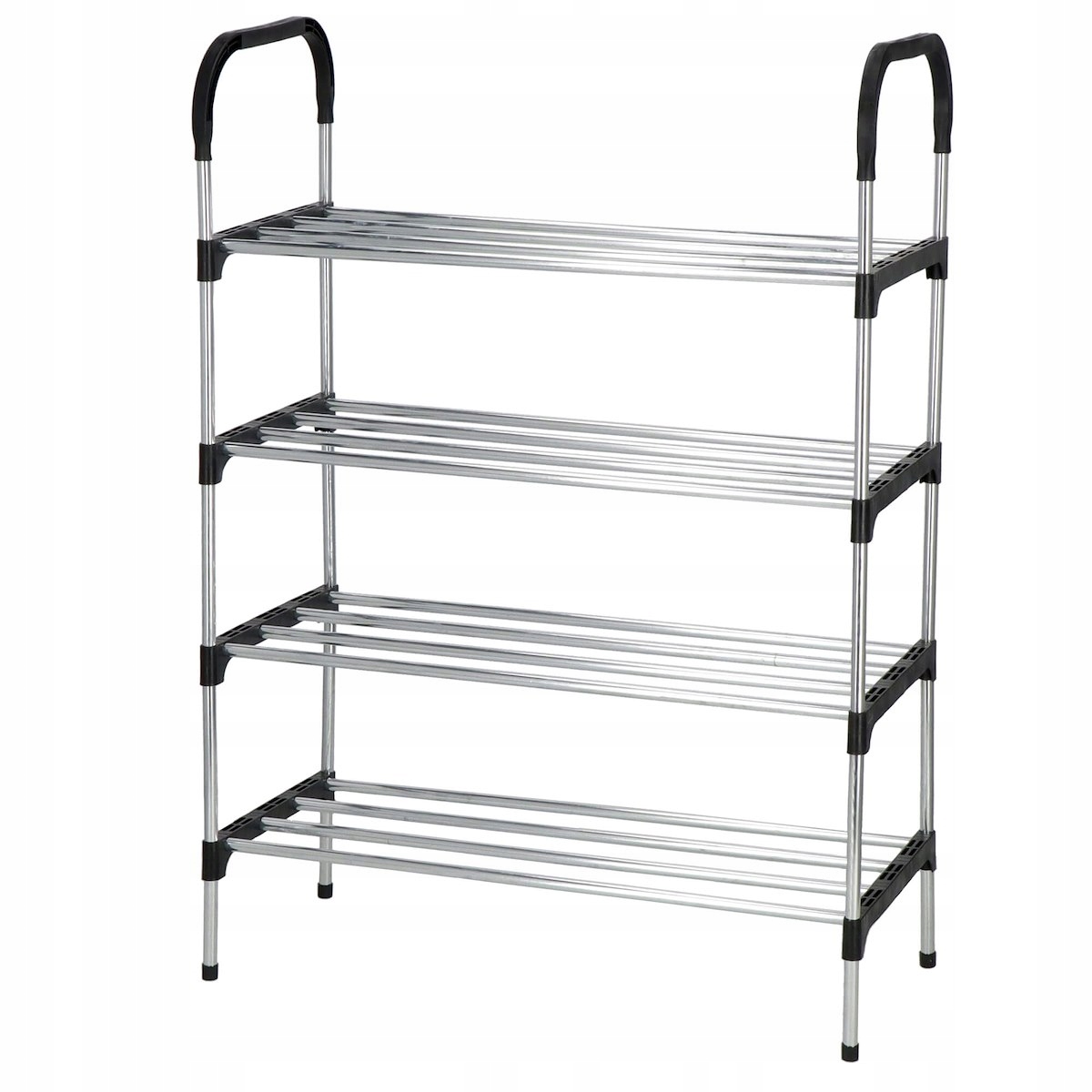 ПОЛКА ДЛЯ ОБУВИ 4-УРОВНЕВАЯ ПОДСТАВКА СЕРЕБРЯНО-ЧЕРНАЯ