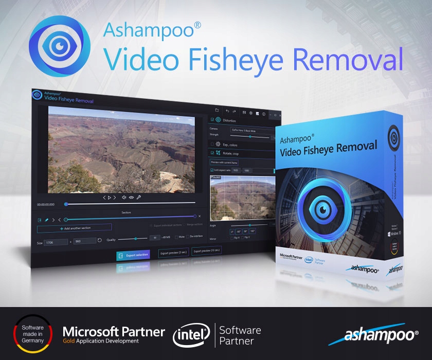 Ashampoo Video Fisheye Removal положит конец дрожанию объектива! Более 50 предустановок для спортивных камер (GoPro, Mobius ActionCam, Rollei, Sony и других) позволяют восстановить изображение со сдвигом объектива одним щелчком мыши. Встроенный предварительный просмотр в реальном времени позволяет точно настроить такие элементы, как баланс белого, экспозиция и цвета. Ashampoo Video Fisheye Removal — неоценимая помощь владельцам спортивных камер GoPro и всем, кто ожидает 100% реализма!