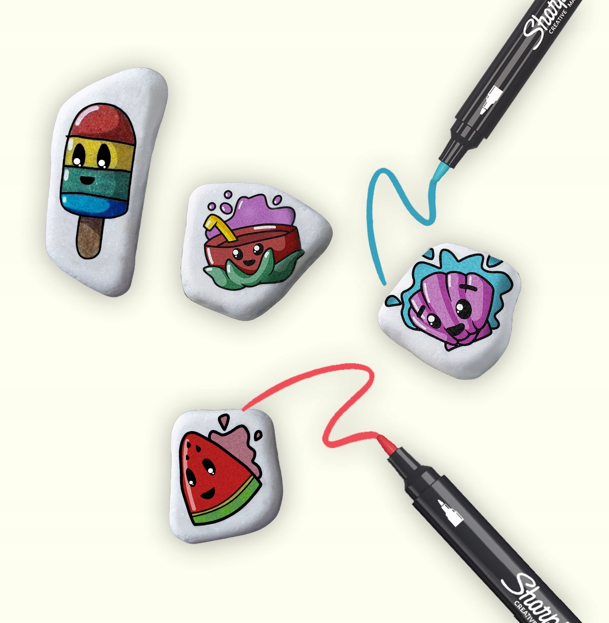 Благодаря интенсивным цветам, долговечности и точке, акриловые маркеры Sharpie идеально подходят для рисования камней и создания уникальных сувениров от лета!