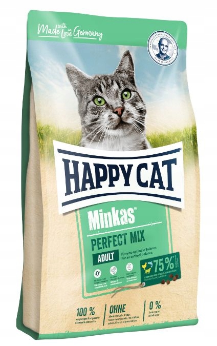 Happy Cat Minkas Perfect Mix -особенно хорошо, полно -времена для взрослых кошек. Благодаря вкусной птице, нежном ягненке и вкусной рыбе, эта сухая пища - настоящий взрыв вкуса к вашей кошке.