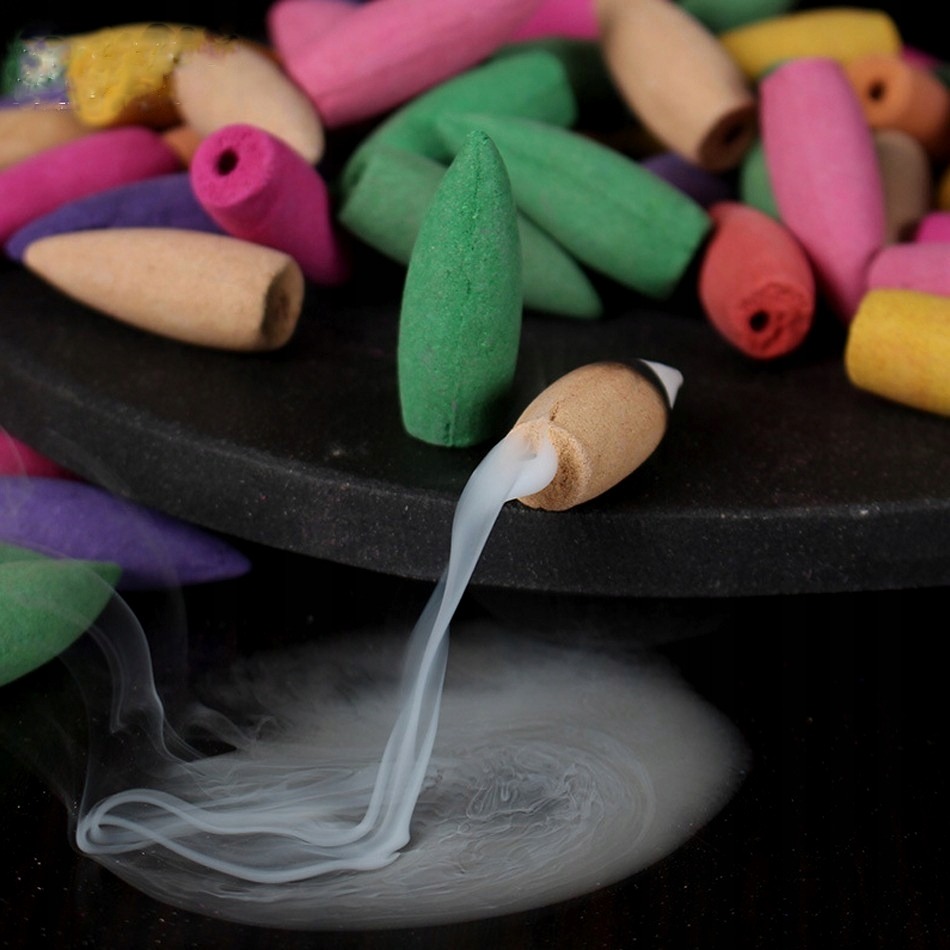 Ароматические палочки с обратным потоком изготавливаются путем сжатия измельченного ароматического материала в форму конуса. Плотно спрессованный материал позволяет создать интенсивный аромат, благодаря чему использование ароматических палочек становится намного лучше, чем в случае с традиционными ароматическими палочками.