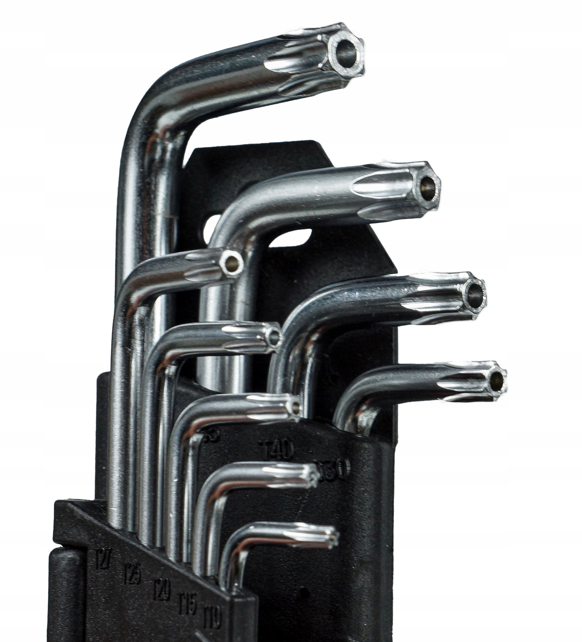Набор ключей Torx типа L с отверстием содержит 9 ключей: ЧЕРНЫЙ