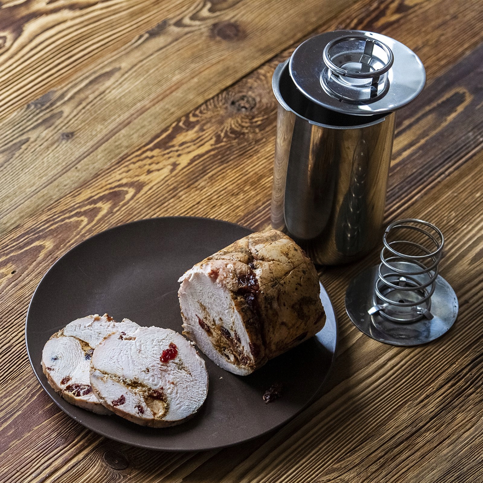 Вместимость этой модели ветчинницы идеально подходит для порции компактных и сочная ветчина, а также рагу и мясные закуски, рулеты, бекон или другие блюда, в том числе вегетарианские. Блюдо выдерживает до 1,5 кг груза. В инструкции пользователя, входящей в комплект, вы также найдете рецепты, которые мы опробовали и порекомендовали!