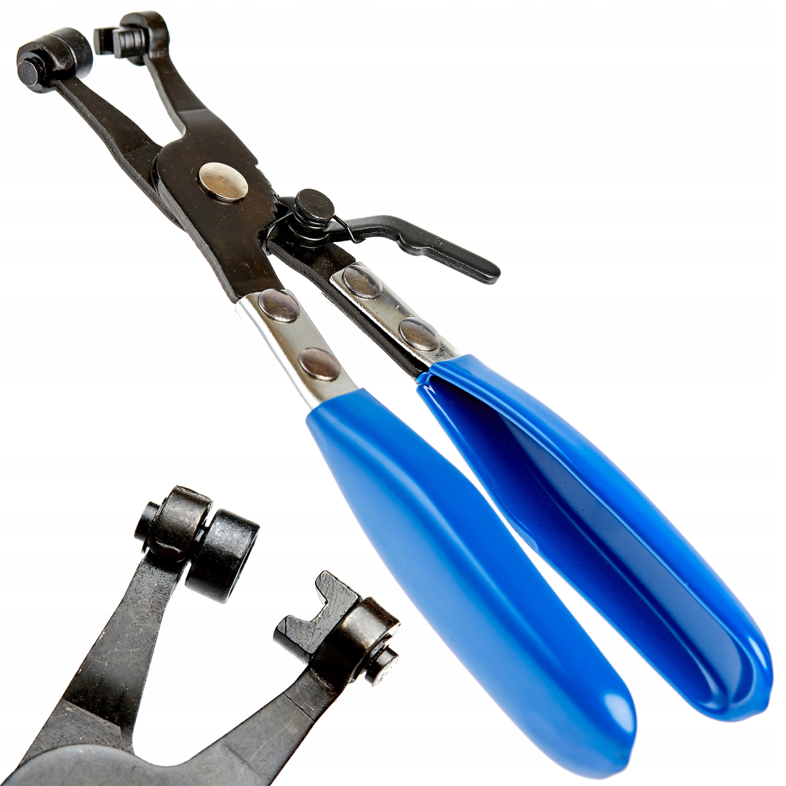 Плоскогубцы используются для сжатия компенсационных зажимов. Клещи имеют 5-ступенчатый механизм, который автоматически фиксирует их в закрытом положении. На концах имеются соответствующие выемки для удобного захвата и сжимания. Общая длина: 210 мм. Плоскогубцы, предназначенные для работы в автосервисах и домашних гаражах. Эргономичная ручка покрыта резиновым покрытием, благодаря которому съемник можно надежно удерживать.