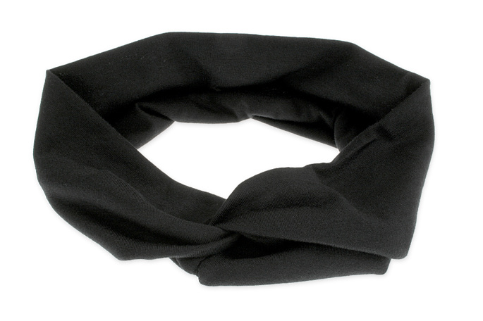 Материал повязки для волос из трикотажного полотна черного цвета с узлом.