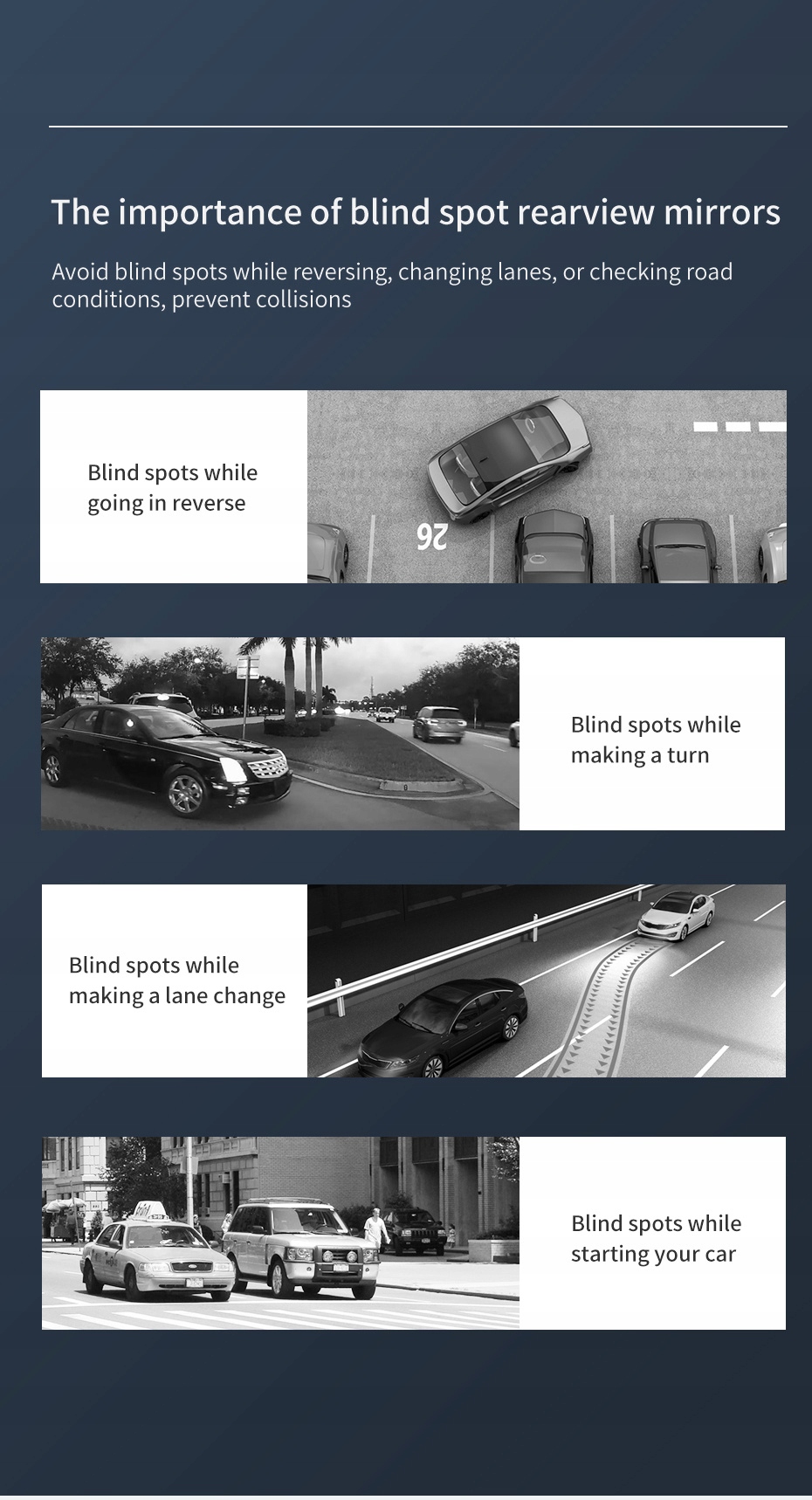 Комплект из двух дополнительных широкоугольных зеркал, устраняющих «слепую зону» в боковых зеркалах автомобиля. . Они увеличивают угол обзора, повышая безопасность дорожного движения и облегчая парковку.