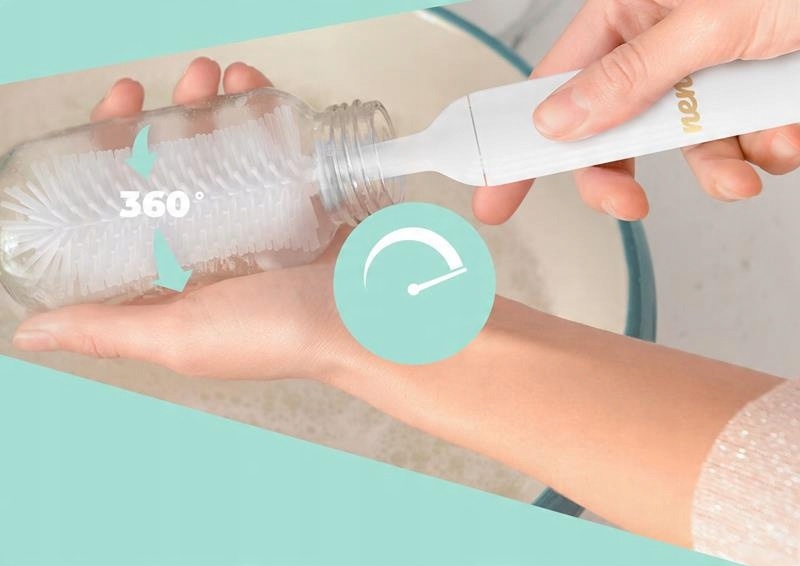 Остатки еды являются источником роста бактерий, которые могут попасть в пищеварительную систему ребенка. Избавиться от них можно, воспользовавшись специально профилированным наконечником, который идеально соответствует форме соски бутылочки. Силиконовые выступы достигают труднодоступных мест и точно удаляют остатки. В результате вы можете быть уверены, что соска будет чистой и готовой к повторному использованию.