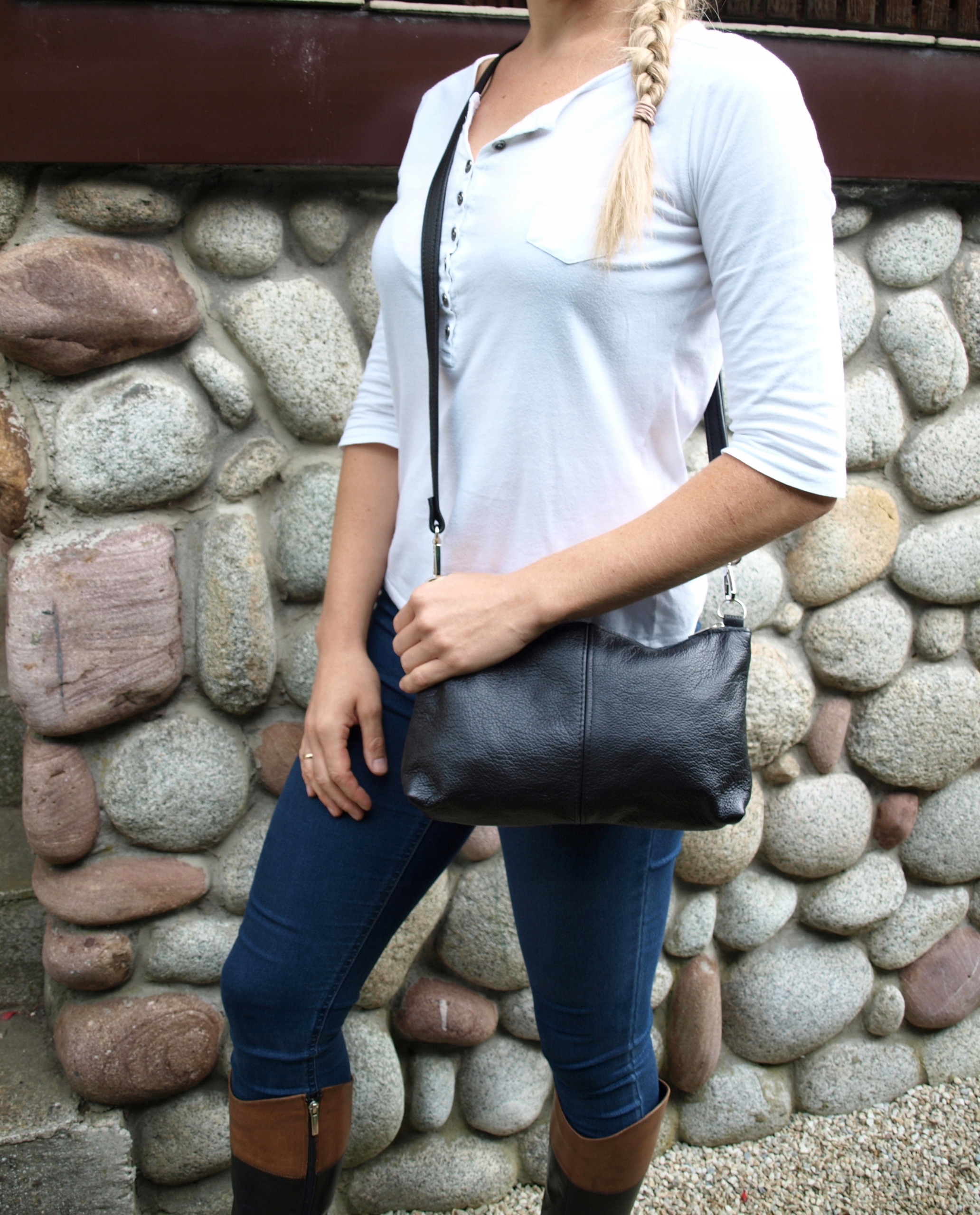 Мягкая кожа и магнитная застежка позволяют носить сумку различными способами.