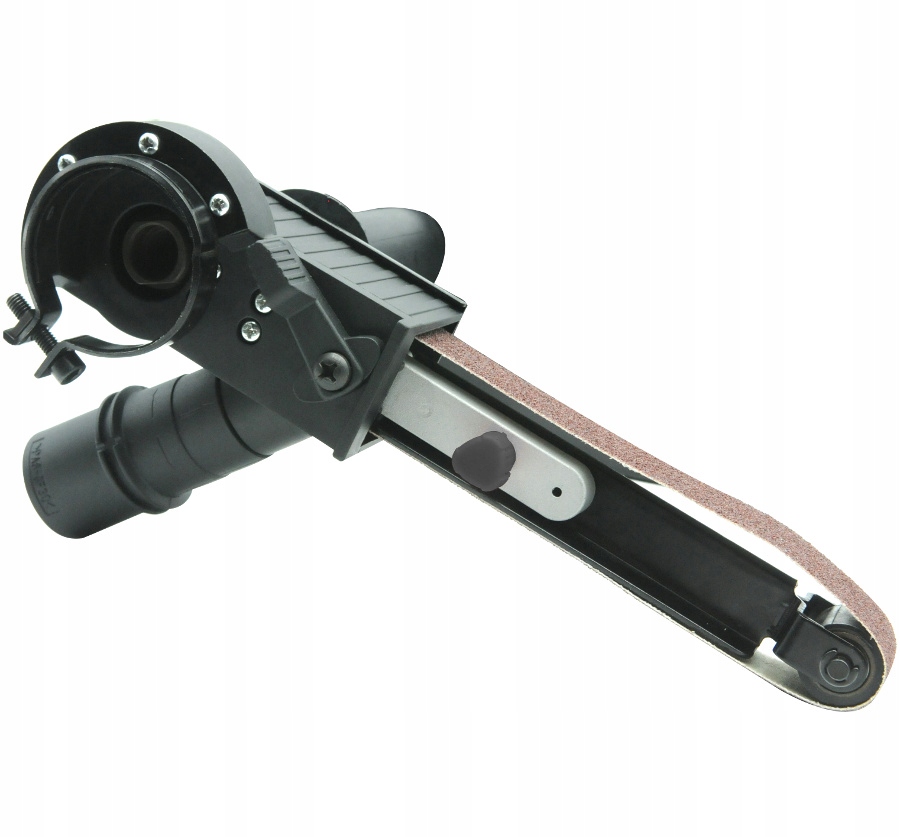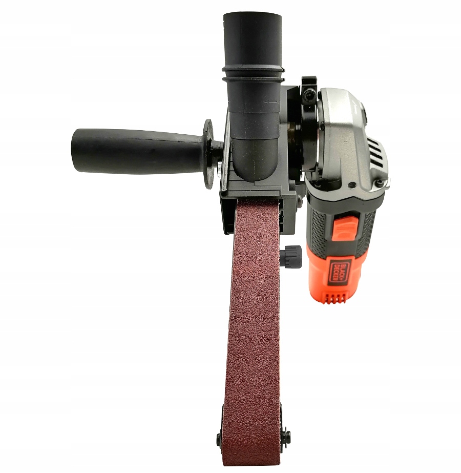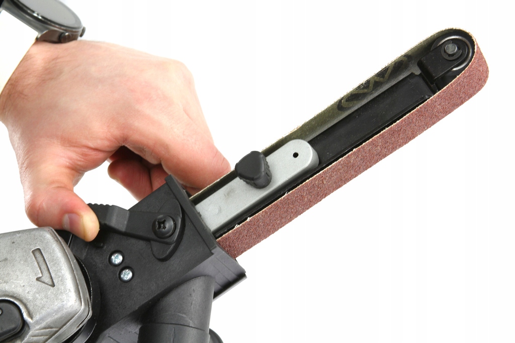 Насадка для шлифования позволяет быстро заменить угловую шлифовальную машину на ленточную.