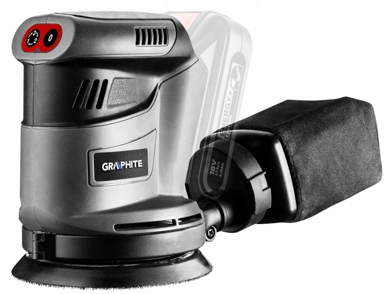 - ГРАФИТОВАЯ эксцентриковая шлифовальная машина, совместимая с литий-ионными аккумуляторами GRAPHITE Energy+ 18 В.