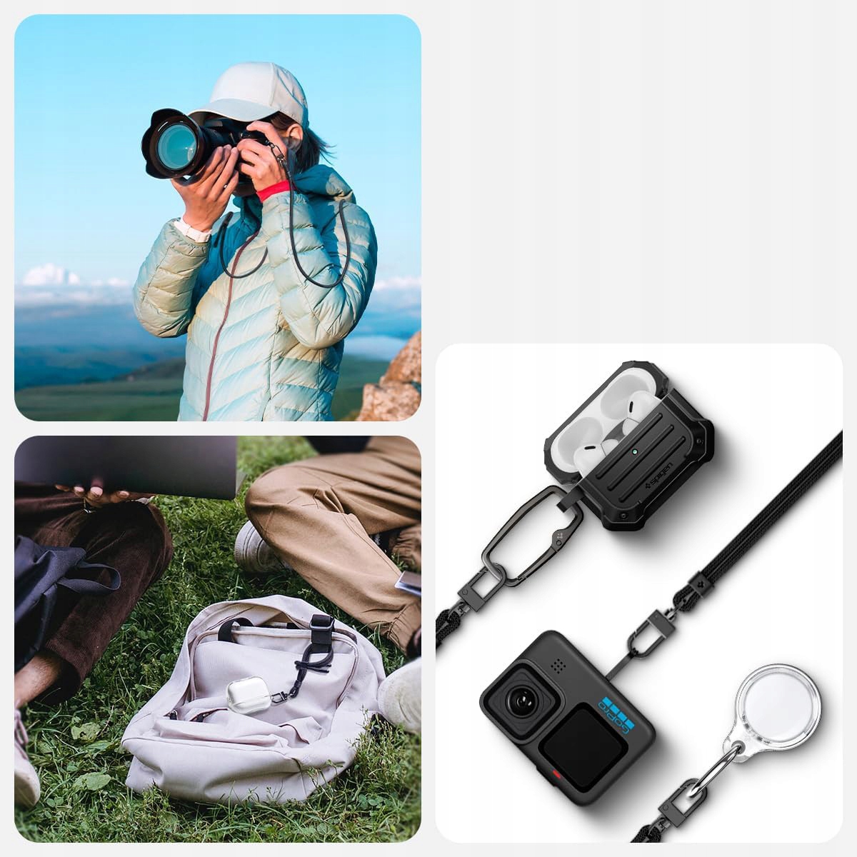 Безопасно носите свой телефон, ключи и другие мелкие предметы с помощью современного ремня Spigen через плечо и ремешка на запястье Spigen.
