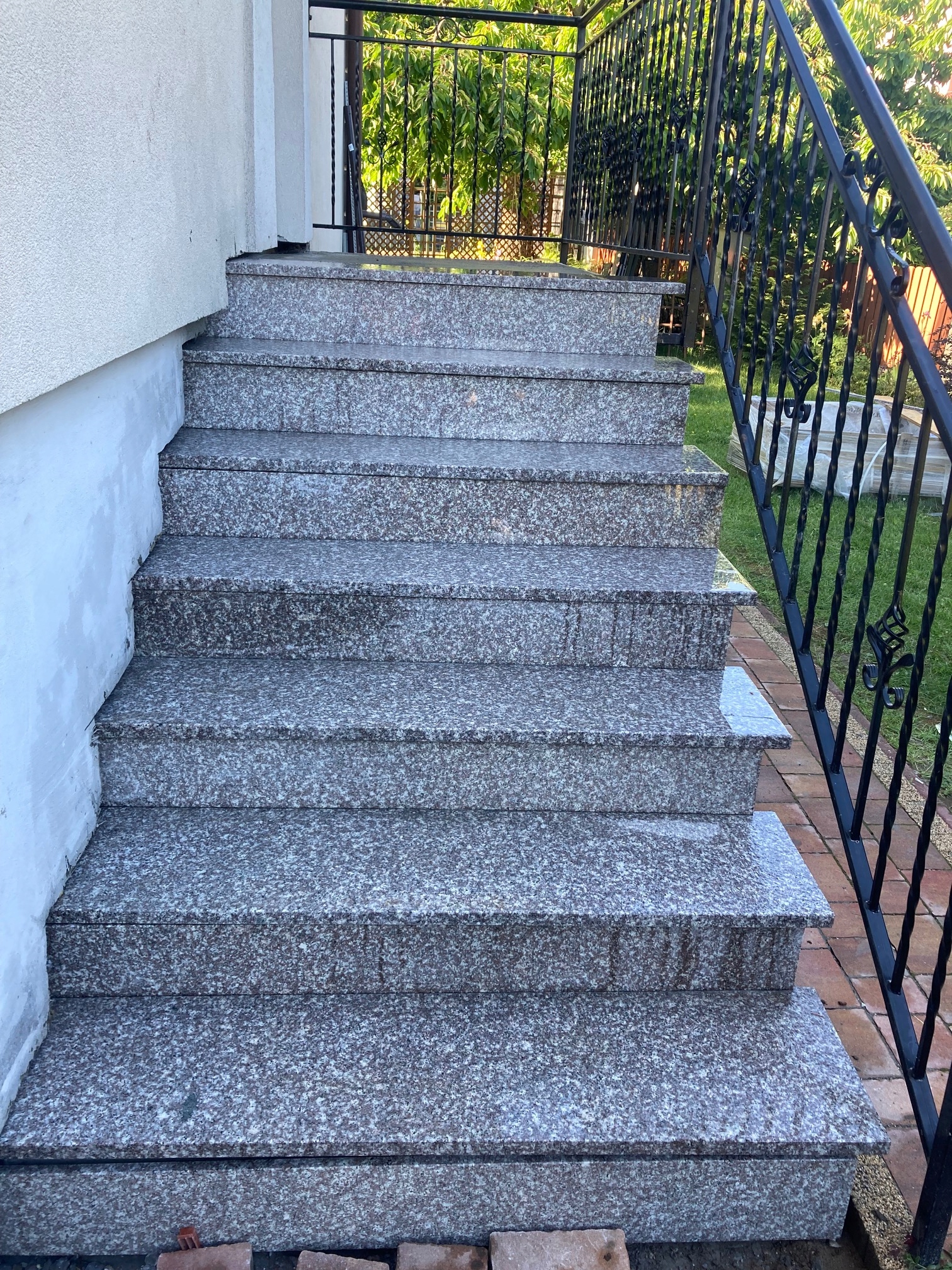 Черного гранита с полированной отделкой, размером 150х33х2 см, с гладкой поверхностью. Лицевая сторона ступени отполирована и очень эстетично отделана двухмиллиметровой фаской. Также может использоваться как подоконник.