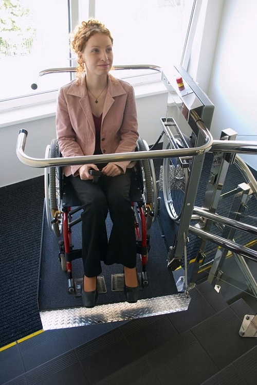 Лестничная площадка для перевозки инвалидов на колясках с большими задними колесами и на электроприводах инвалидные коляски