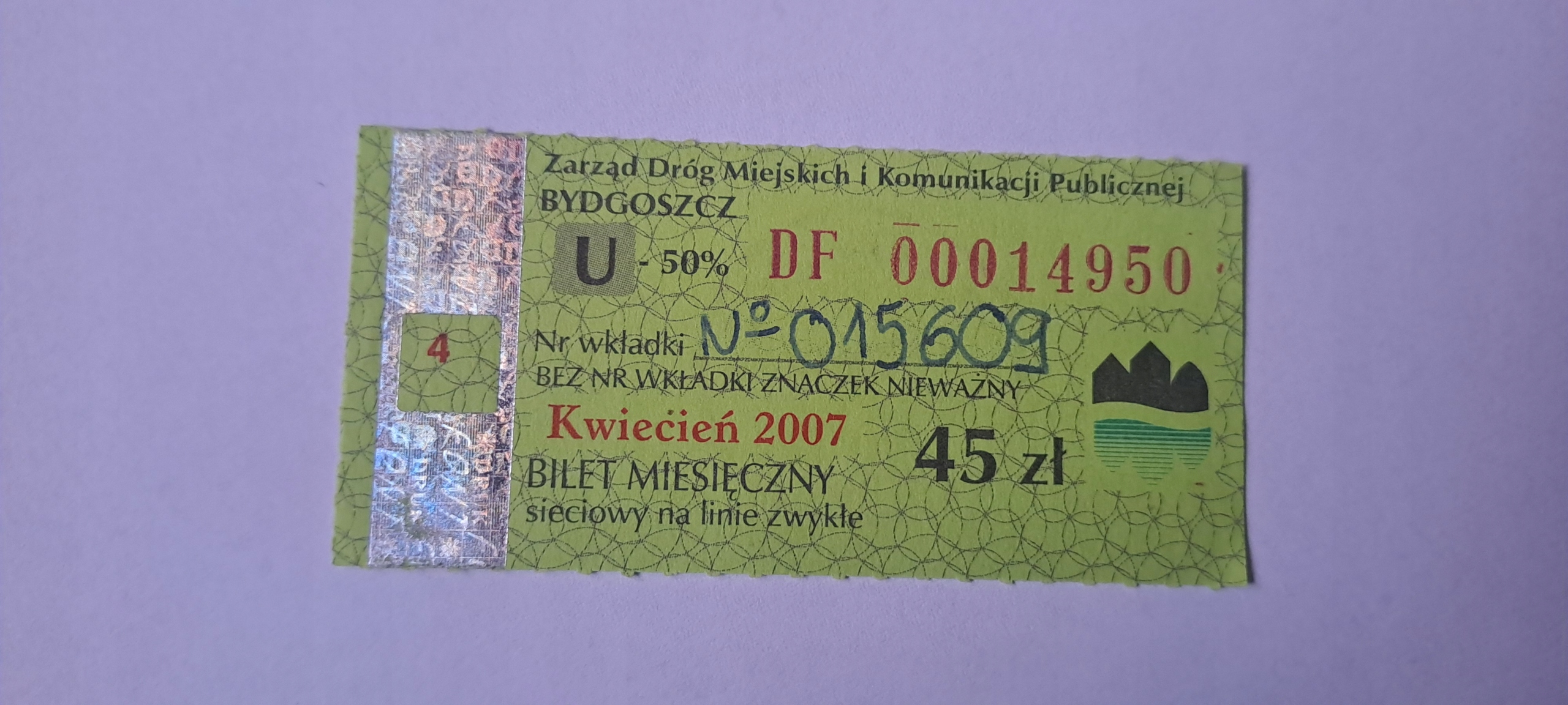 Bydgoszzcz Билет ежемесячный марок 04/2007