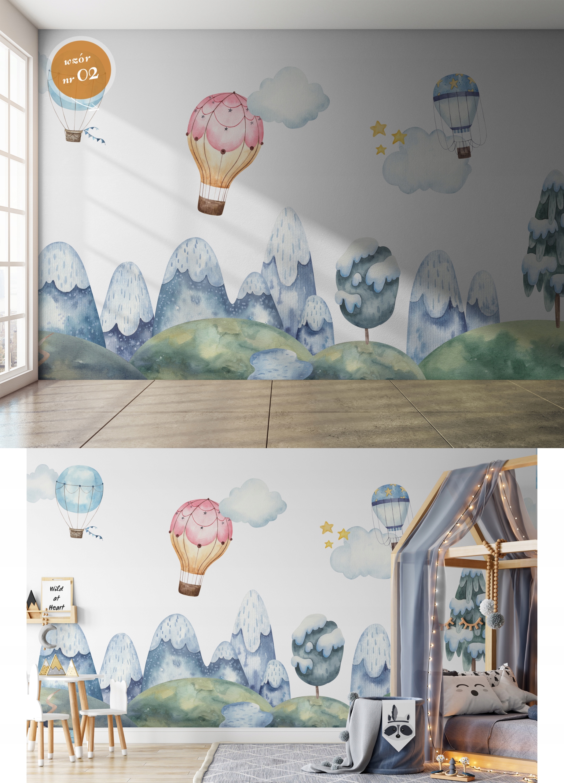 Шпалери для дітей гори повітряні кулі БЕЗКОШТОВНО