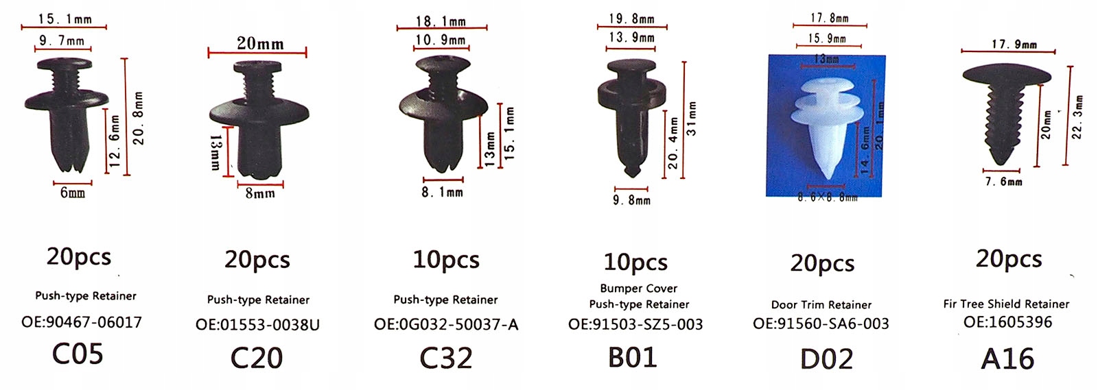 Набор, состоящий из 6 самых популярных автомобильных зажимов, доступных таких брендов, как