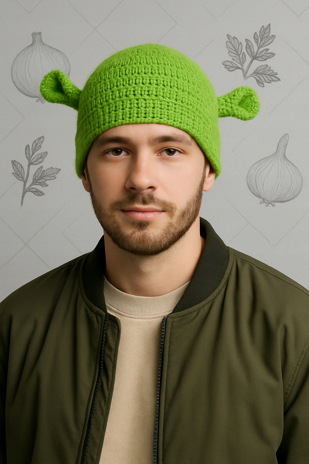 Зимняя охваченная пряжа в форме головки шрека. Это улучшит ваше настроение :)