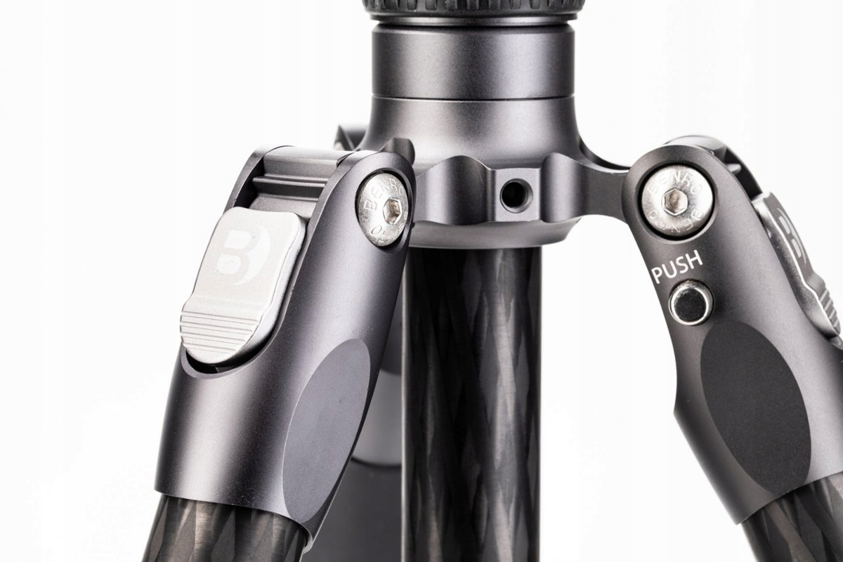 Benro Rhino — новая серия туристических штативов, в которой дизайнеры постарались добиться идеального баланса размера и веса, не потеряв при этом необходимой устойчивости. Карбоновые ножки, которые откидываются назад, облегчают транспортировку штатива и не занимают много места в багаже. Ножки могут независимо раскладываться и фиксироваться в трех положениях, а также имеют автоматическую регулировку угла наклона для быстрого и надежного позиционирования. Они соединены друг с другом алюминиевым основанием, содержащим центральную колонну. Основание также имеет монтажную резьбу 3 1/4 дюйма для установки аксессуаров. Центральная колонка также является частью монопода, который можно получить, закрепив его одной из съемных ножек. Ножки заканчиваются резиновыми ножками, профилированными для обеспечения наилучшего сцепления независимо от того, расположены ли ножки вертикально, под углом или почти горизонтально. Резиновые ножки можно заменить металлическими шипами, входящими в комплект, благодаря чему штатив можно устойчиво устанавливать на сложных поверхностях.