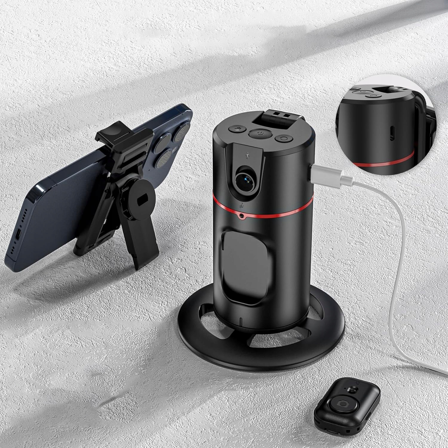 - Вам не нужно громоздковое фотоаппарат, этот портативный штатив с функцией автоматического отслеживания лиц в диапазоне 360 градусов оснащен складным мини -корпусом с подставкой, которая поднимается и скрывается, что облегчает перенос. Это 1200 мэх, что достаточно для постоянной работы в течение 4-6 часов