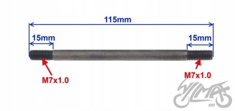 Общая длина 115 мм, диаметр 6,2 мм, нить M7