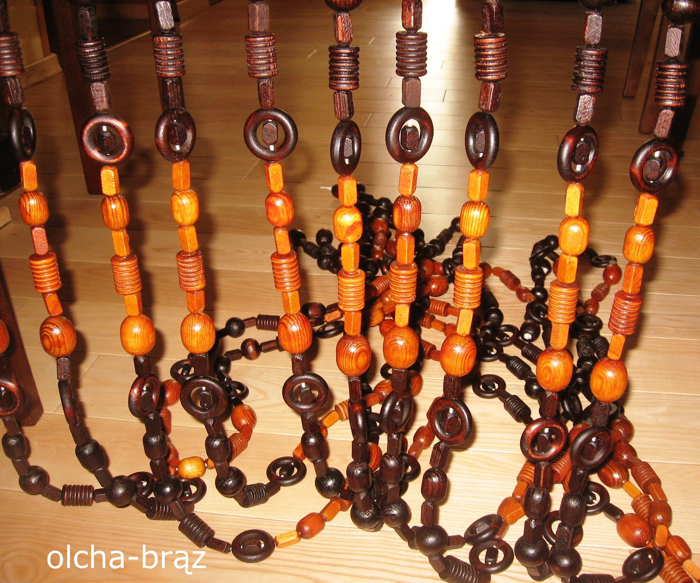 Штора изготовлена из деревянных бусин, покрытых лаком. Сверху он отделан деревянной планкой, которую можно прикрепить к дверной коробке или стене с помощью дюбелей и шурупов. Его также можно повесить над дверной коробкой на угловые крючки, он имеет очень привлекательный внешний вид и вписывается в любой интерьер. Сделано добротно и эстетично.