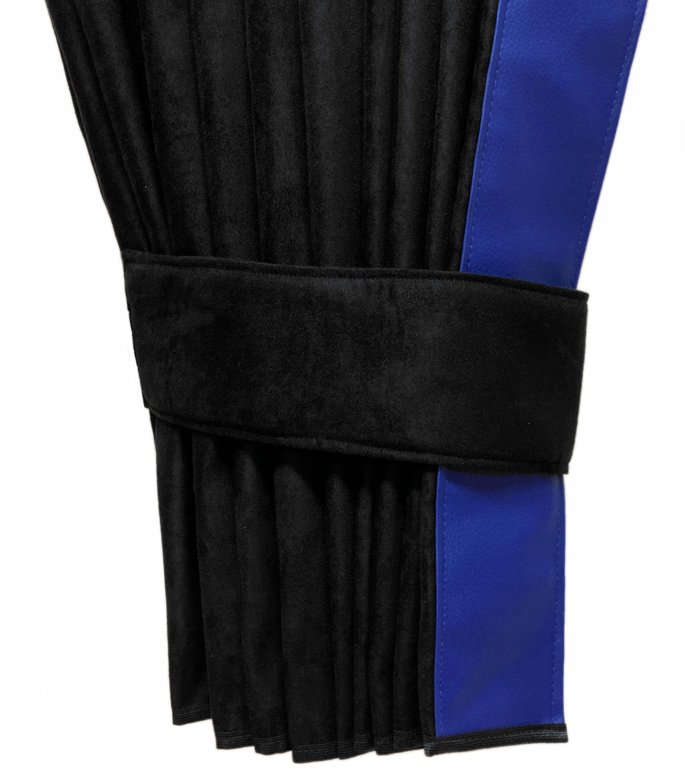 Каждая боковая штора отделана кромкой из экокожи. Край шириной 9 см. - посмотреть фото