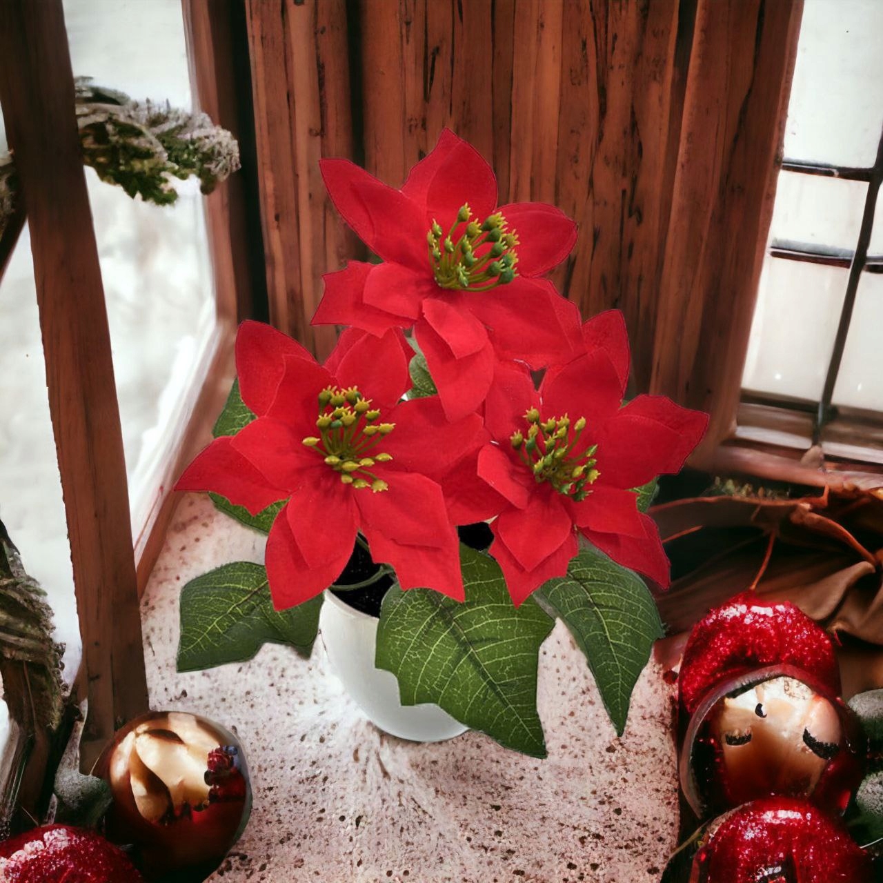 ШТУЧНА РОСЛИНА В ГОРШКУ ВІФЛЕЄМСЬКА ЗІРКА КВІТИ СВЯТА КОМПОЗИЦІЯ ТАБЛИЦЯ