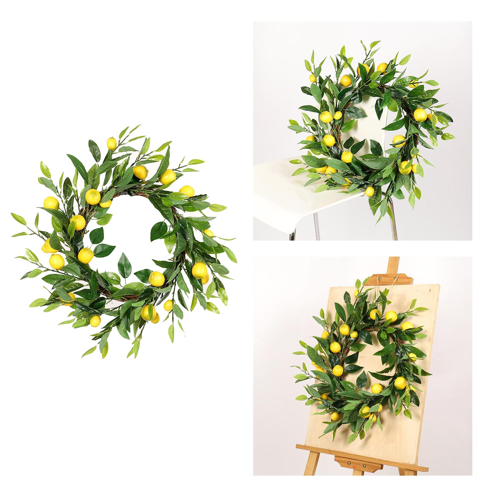 , украшенный искусственными лимонами, зелеными листьями, этот цветочный венок принесет приятную атмосферу в ваш дом и определенно будет сиять ваш сезон. Атмосфера. Также, это может быть ежедневным украшением.