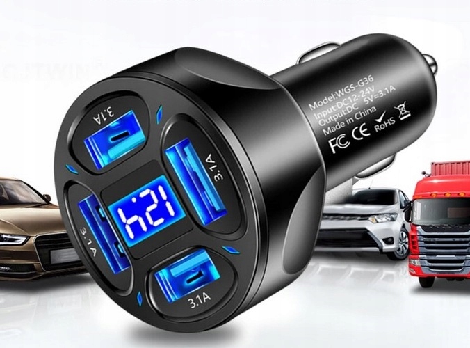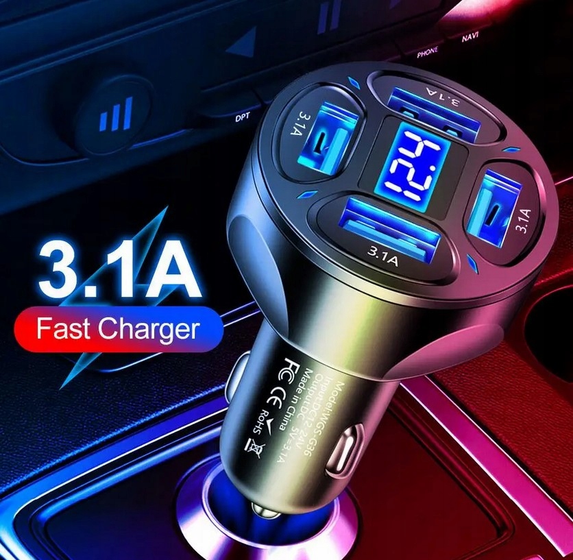 - Автомобильное зарядное устройство 4 x USB 3.1A