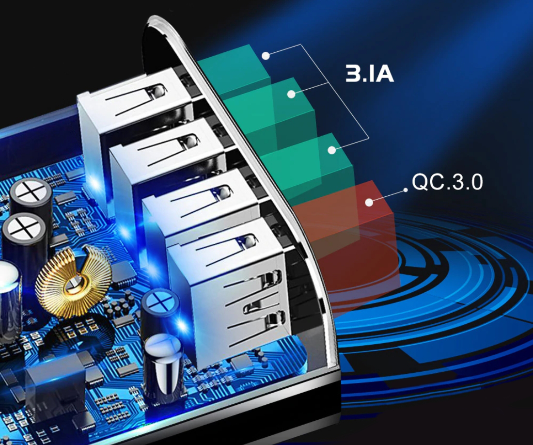 Устройство работает со всеми USB -кабелями, и автоматически регулировка напряжение зарядка благодаря встроенной функции Smart . Безопасная работа, в то же время Устранение риска повреждения загруженного устройства.