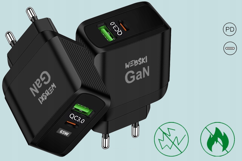 Благодаря своей мощности зарядное устройство Webski способно зарядить даже ваш ноутбук. Ноутбуки с универсальным разъемом для зарядки USB-C уже стали обычным явлением. Чтобы оправдать ожидания, зарядное устройство Webski способно их заряжать.