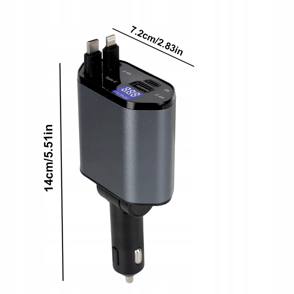 Наше автомобильное зарядное устройство для автомобиля зажигалка поддерживает зарядку четырех электронных устройств одновременно. Зарядное устройство для телефона для телефона оснащено портом USB-C и портом USB-A, а также встроенным зарядным зарядным кабелем типа C и Lightning. Это универсальное автомобильное зарядное устройство подходит для различных устройств, без необходимости дополнительных зарядных кабелей.
