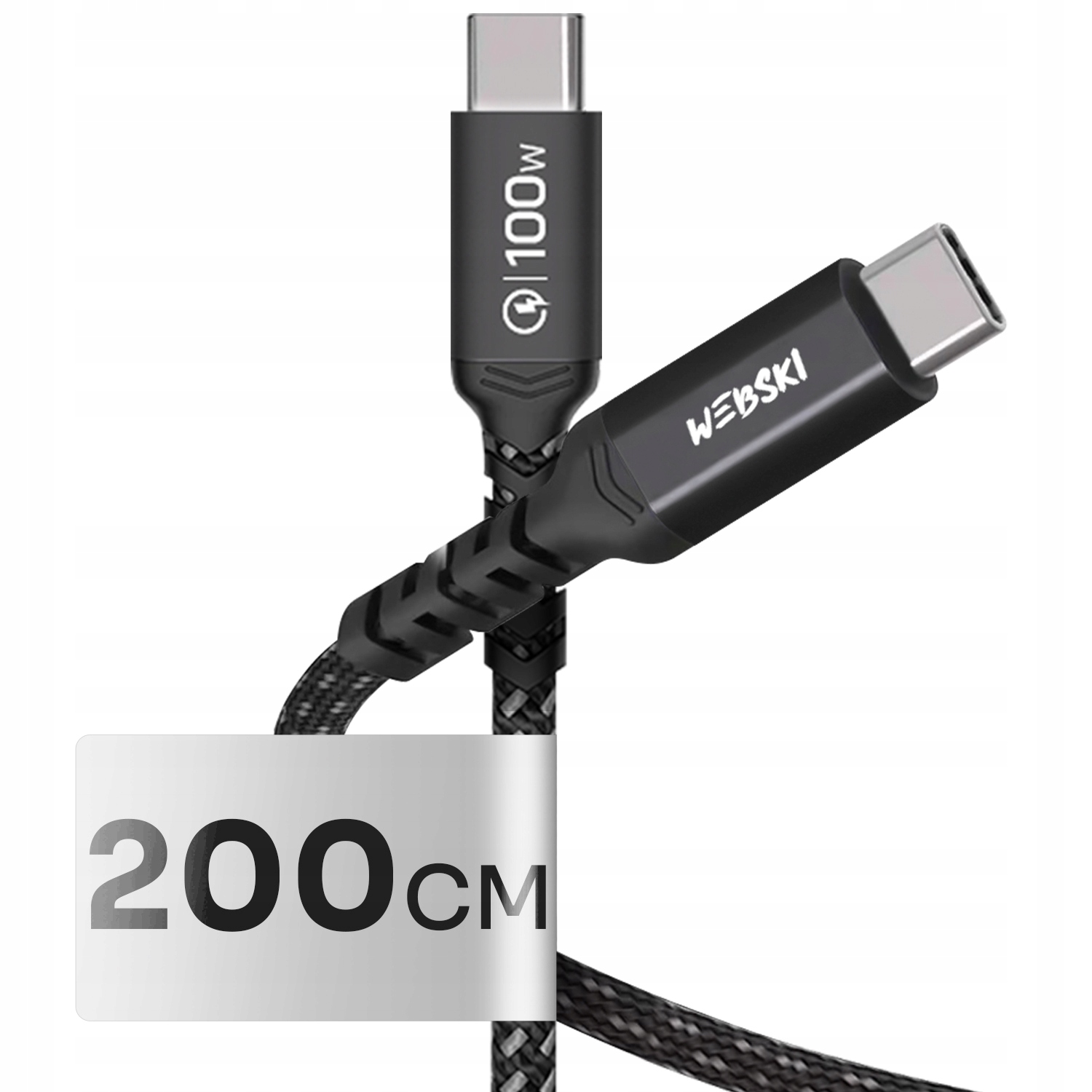 <ул>Длинный кабель Webski USB-C — USB-C — PD 100 Вт, 480 Мбит/с — длина 200 см