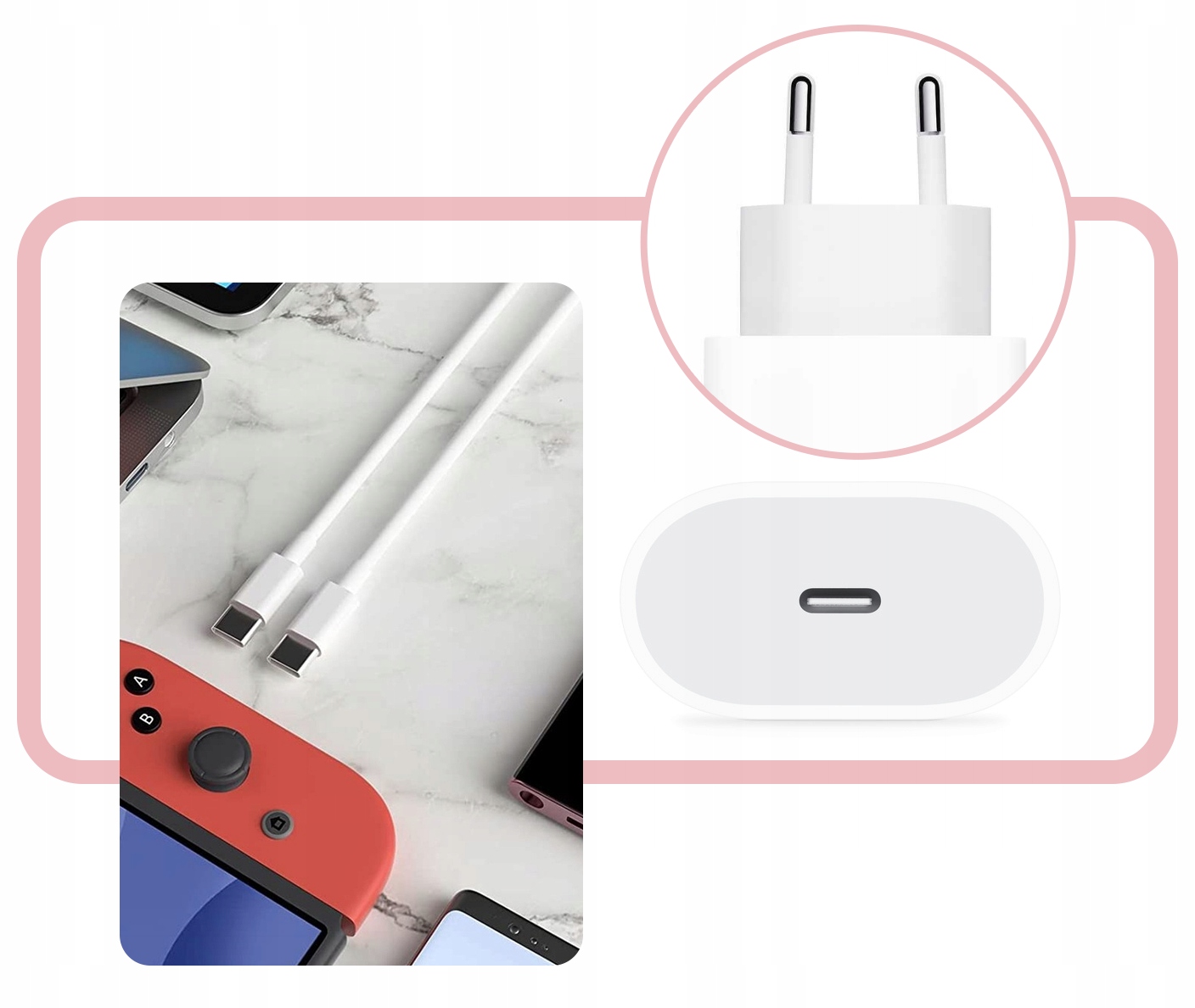 БЫСТРОЕ ЗАРЯДНОЕ УСТРОЙСТВО USB-C 25 Вт + КАБЕЛЬ 1 М для IPHONE 15 / 15 Pro / Plus / Pro Max