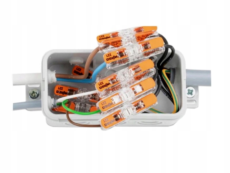 Соединители универсальные компактные предназначены для соединения изолированных многожильных проводов сечением от 0,14 мм² до 4 мм², а также одно- и многожильных проводов. -проволочные провода сечением 0.,2-4мм² - Без применения инструментов.