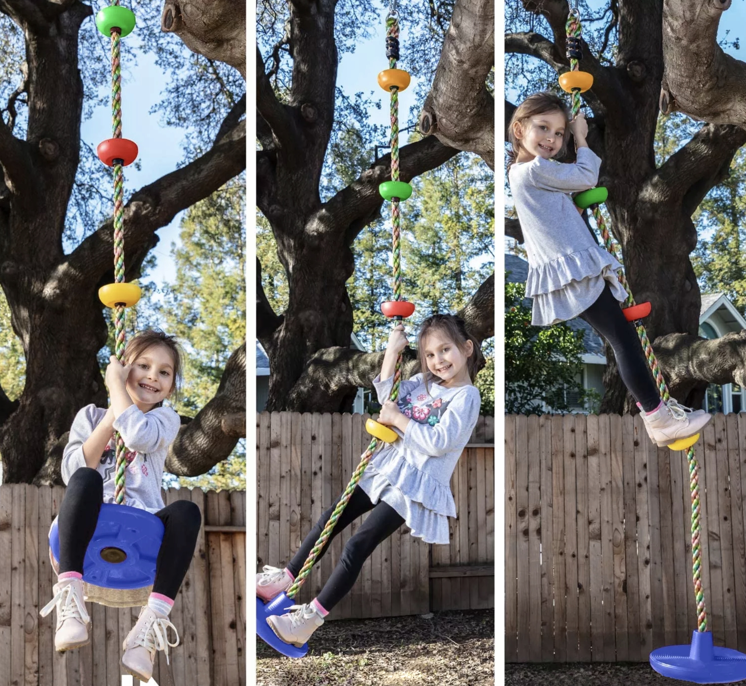Суперпродукт «Качели 2 в 1 + альпинистская веревка для детей с 4 красочными дисками»