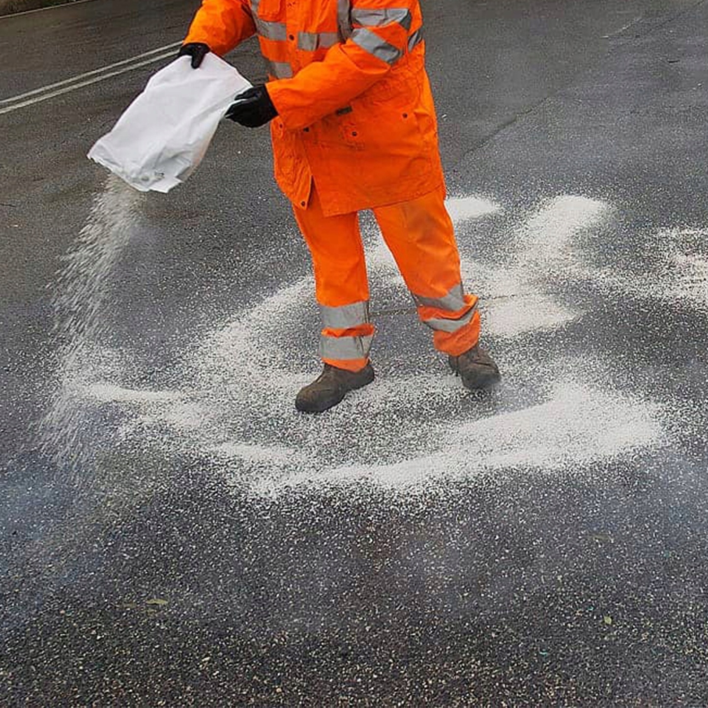 Эта дорожная соль в мешках изготовлена экологически чистым способом, не имеет запаха и сохраняет сыпучую консистенцию независимо от условий.