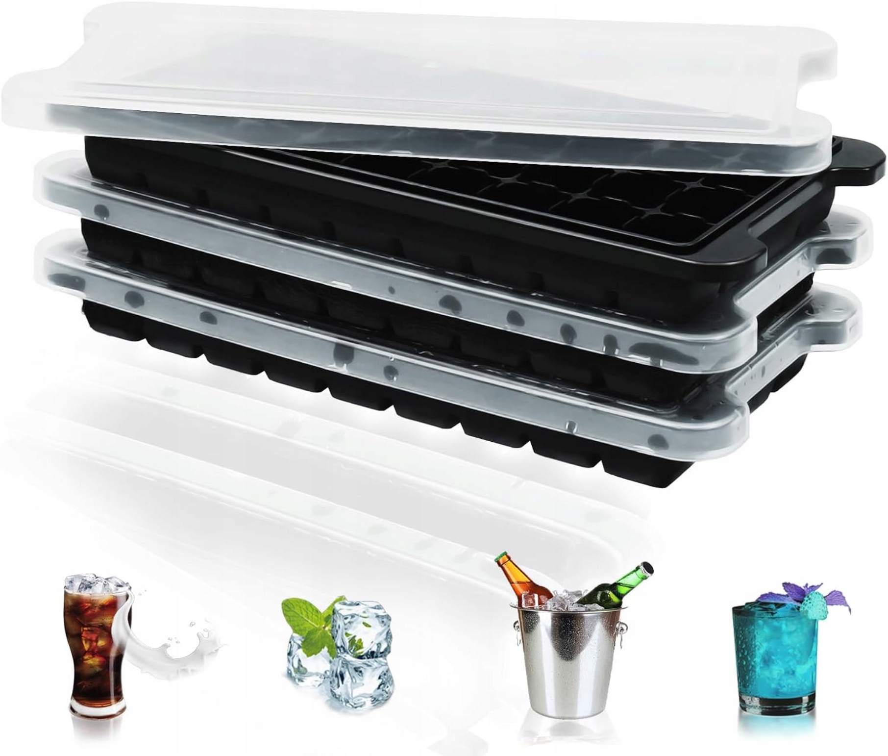 ▶ ️ ️licone Ледяной формы, 36 отсеков, 3 штук, ледяные формы с крышкой, без BPA, для пива, коктейлей, виски, мороженого для детей, фруктов (черный) h1>
