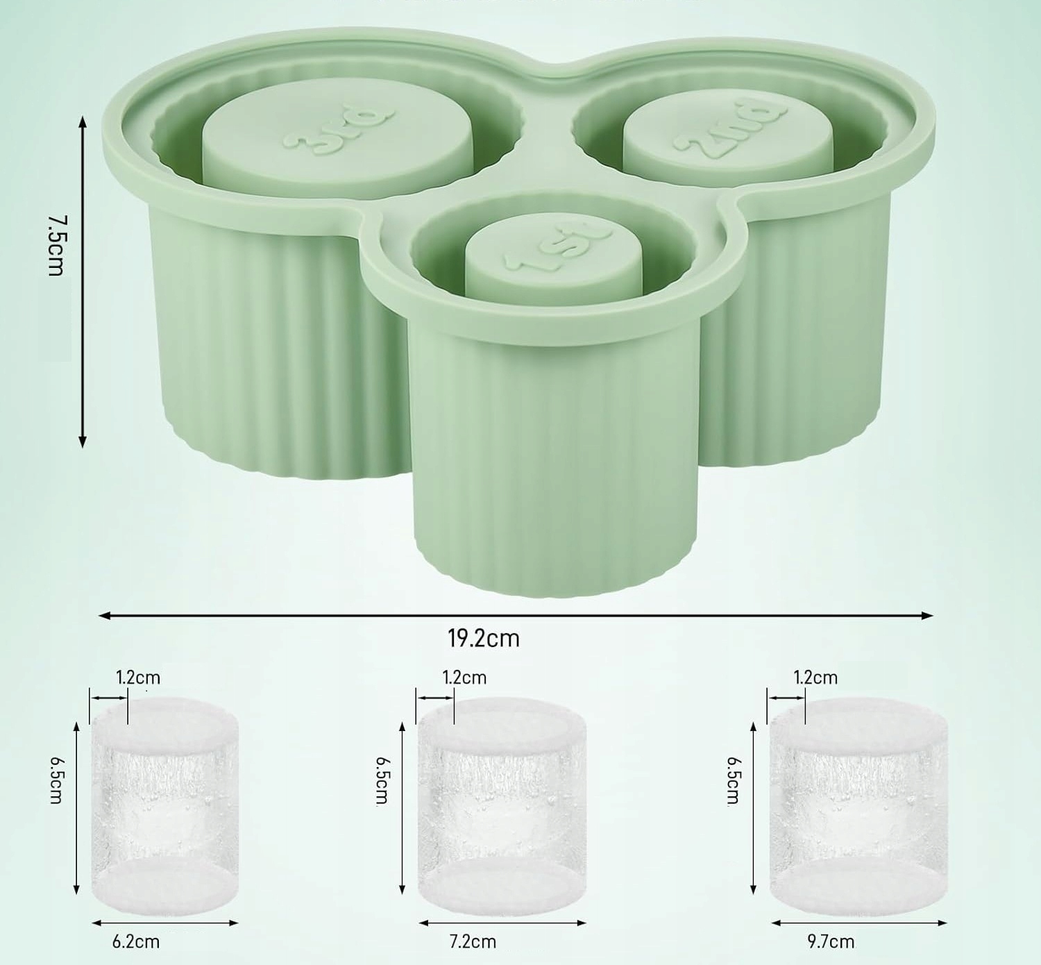 Специально спроектированный лоток кубика льда для чашков - Этот поднос создает три больших кубика льда, благодаря тому, что ваши напитки будут оставаться холодными дольше. Благодаря медленному таянию этих больших кубиков льда, ваш напиток останется неразбавленным и сохраняет свой первоначальный вкус и качество. Силиконовый материал, который не содержит BPA, одобрен для контакта с едой, безопасно для использования.