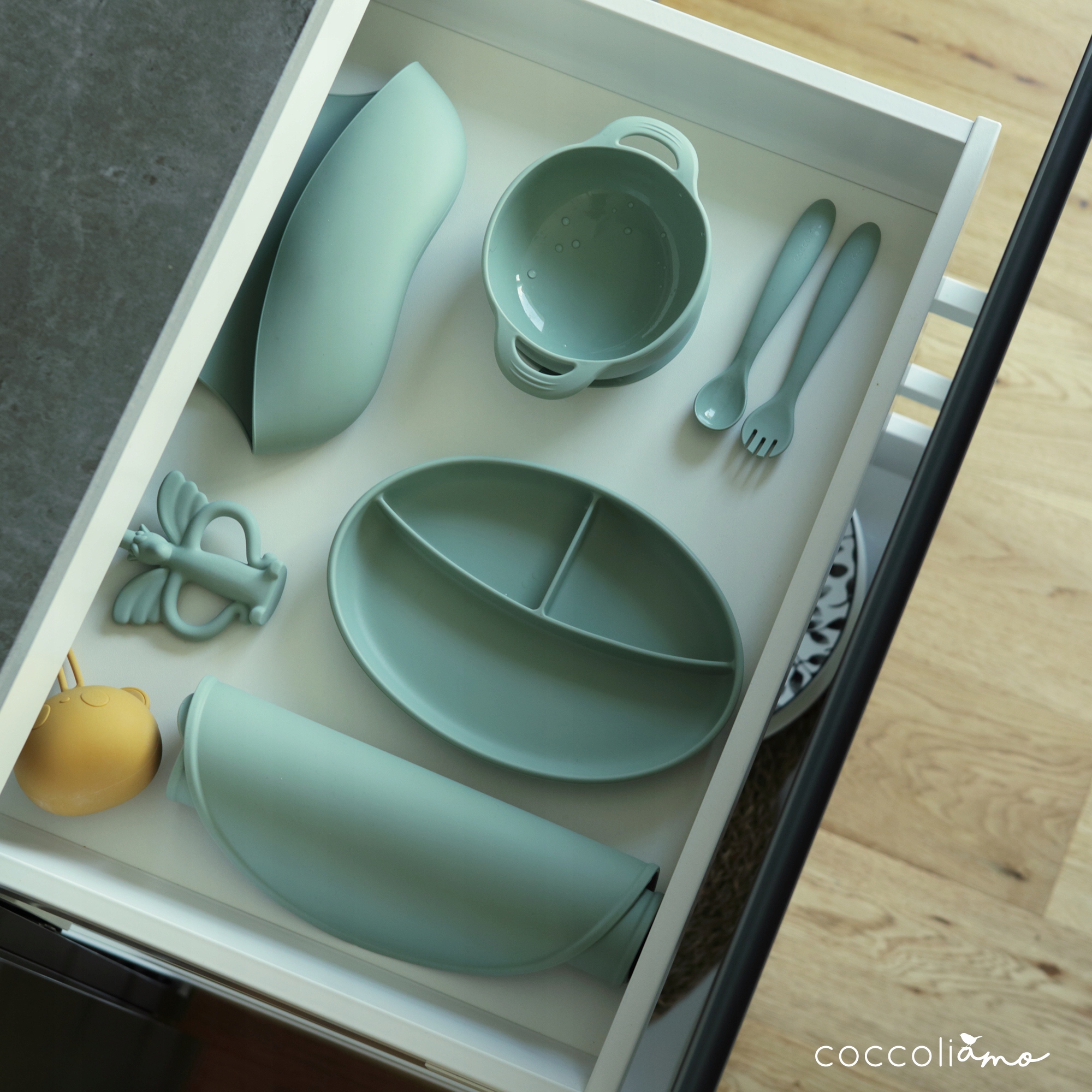 - Силиконовая тарелка на присоске от Coccoliamo идеальный продукт для детей, которые учатся есть самостоятельно и одновременно развивают моторику.